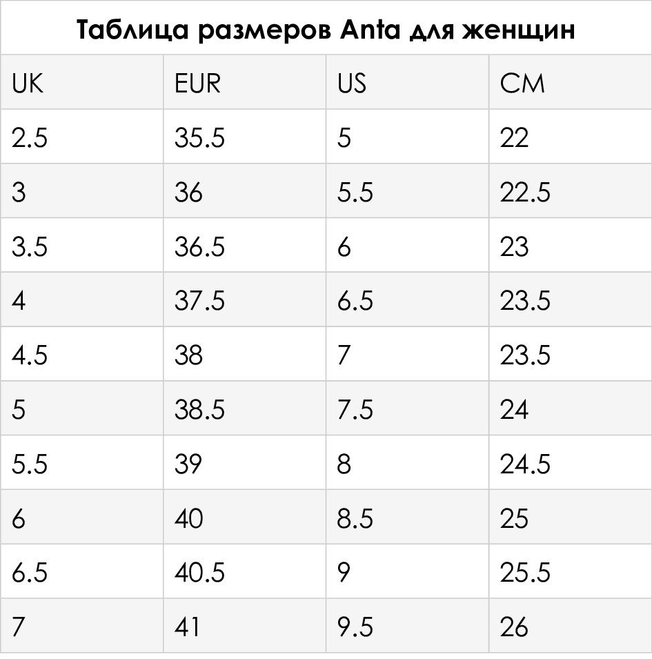По моделям Anta рекомендуем перед покупкой обратиться к нам за подбором размера! Свяжитесь с нами по кнопке выше (кнопка "Бесплатная консультация") или напишите в мессенджерах!